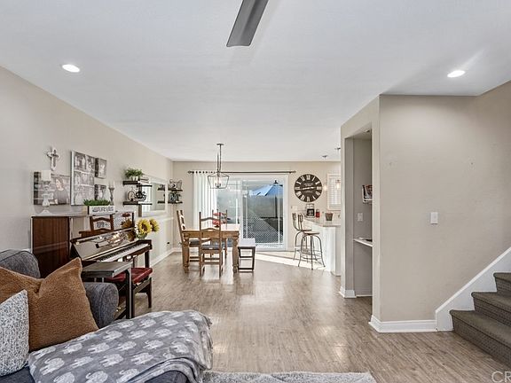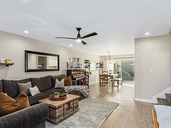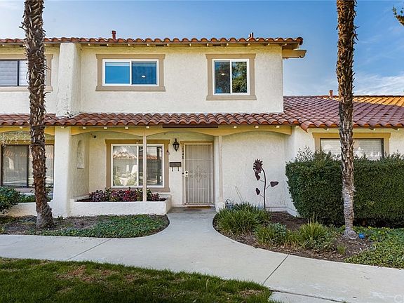 This wonderful home has been completely remodeled with new kitchen, bathrooms, carpet, paint, AC/heat, windows, new pex plumbing throughout, and new patio space out back! The downstairs is an open floorplan with grey laminate flooring throughout, and the beautiful kitchen with white shake cabinets and granite counters overlooks the spacious eating area. The living room flows from the dining room with plenty of room for a huge sectional and more. There is a downstairs bathroom and huge hall closet and custom light fixtures top it off. Up the stairs you'll find a spacious master bedroom with lots of closet space, new ceiling fan and even room for workout equipment. The attached bathroom has a huge, beautiful walk in shower, new vanity and flooring. The hall bath is also remodeled and has an oversized cast iron tub. The two other large bedrooms have new carpet, windows, blinds, ceiling and plenty of closet space. The patio that connects the home to the garage has been upgraded with interlocking pavers and an alumawood patio cover with lighting and ceiling fan. The two car garage is big enough to hold two cars and has a laundry area with a work bench. Out the front door is a large grass area and sidewalks for playing and walking. This unit is also steps from the pool and spa area, and the club house, and extra parking for your guests!
