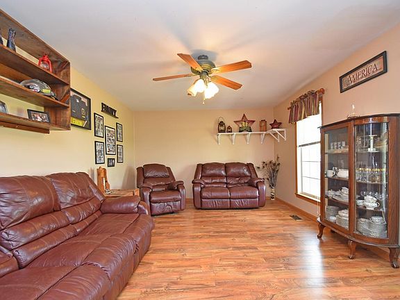 Spacious cape w/many upgrades on 8+ acre mini farm featuring laminate floors throughout, generous bdrms, updated baths & kitchen, walkout LL w/egress window. Sprawling front porch, newer roof, large deck, 24x34 workshop, 24x80 barn w/tack shop, above ground pool. 5 miles from 71, 1/2 mile from Clinton Massie.