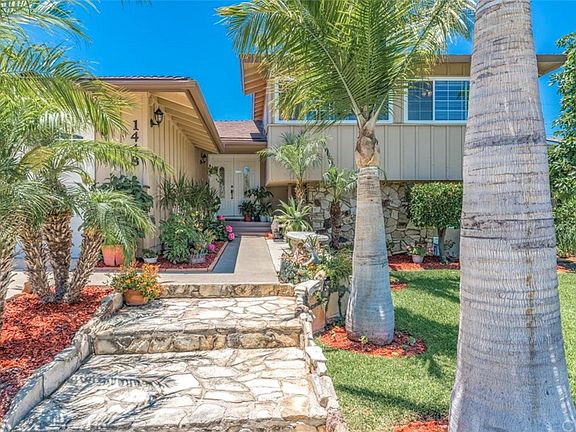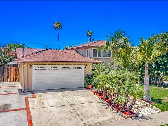 BACK ON THE MARKET!! Buyer couldn't perform.One of a kind tri-level pool home!! Front yard Features a mature landscape and a serene walkway with Avocado tree and lots of Palm trees. This Home also features 4 spacious bedrooms 3 bathrooms and is conveniently located on a Cul-de-sac. 1 Bedroom and 1 Bathroom are located on the first level, also on the first level a Den/Game room with a wet bar (possibly could be a 5th bedroom) that leads to the pool area. The large Living room/Formal Dining Room features a fireplace and custom tile flooring including an amazing marble/travertine medallion. Kitchen has been updated and now features granite countertops, new laminate flooring, new dishwasher, new oven, new cooktop, and new exhaust fan. Additional features include new paint throughout, dual pane windows, sliding doors, ceiling fans, convenient laundry room inside and updated bathrooms with new light fixtures and new laminate flooring on Master Bedroom. Out back enjoy the redone huge pool with the pump equipment being fairly new. The large private backyard is perfect for entertaining. This amazing home is conveniently located close to shopping centers, freeways, Disneyland, and Angel Stadium. Come check out this Gorgeous home and settle into one of the Best School Districts and Neighborhoods you'll find in the area.