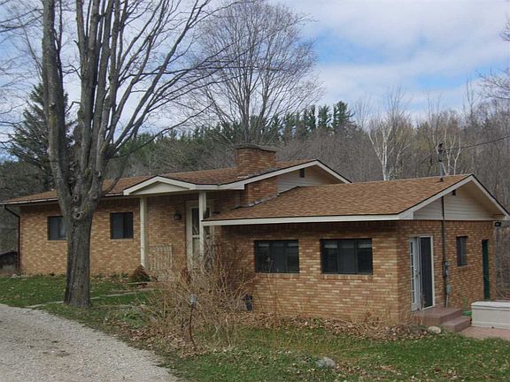 Nice family home on 18 acres close to boat launch and snowmobile trails. Pole Barn, hardwood floors in living room and bedrooms. Large family room, lots of space for a growing family. 16 x 28 imprinted concrete patio with fire pit. Save money on your heat with a wood burning central heat system with electric backup.