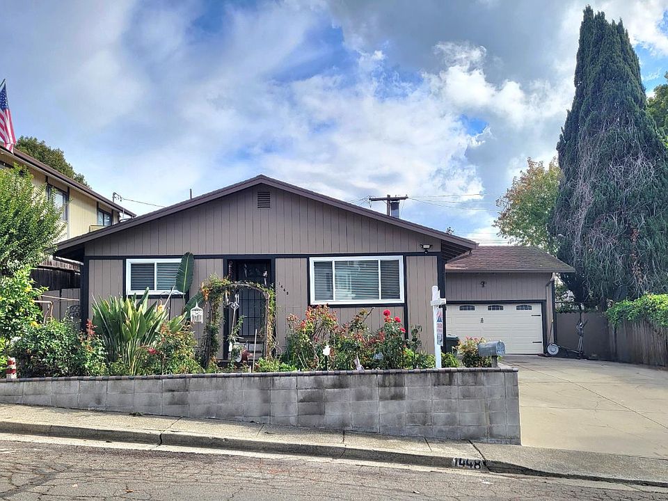 Welcome to 1448 Ohare Drive in beautiful Benicia! This charming single-story home features 4 bedrooms, 2 bathrooms, & a host of recent upgrades. Located just a few blocks (a 5-10 minute walk) from downtown 1st Street, you'll enjoy easy access to fine dining, boutique shopping, & vibrant annual festivities. Step into the inviting living room, where you'll find peek-a-boo views of the water, a stunning raised corner fireplace, hardwood floors, & recessed lighting. The kitchen boasts of newer cabinetry, granite countertops, a stainless steel 5-burner gas stove, stainless steel refrigerator, dishwasher, a small walk-in pantry, & a cozy eating area. The primary bedroom features newer carpet, recessed lighting, a sliding door to the backyard, and a walk-in closet. Its en-suite bathroom includes a newer vanity,quartz countertop, waterproof wood plank flooring, & a shower-tub combo. The hall bathroom, updated in 2022, offers a double sink vanity with marble countertops and stylish finishes. Additional highlights include: newer dual-pane windows, newer water heater (2021). All interior doors replaced in 2018,recessed lighting throughout most rooms,front landscaping with a citrus tree and a blooming garden that attracts hummingbirds.There is room for your RV/boat/cars. Solar is leased.