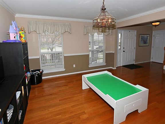 Nestled on a desirable cul de sac backing to trees & open ground, this darling 4 bedroom 2 story has it all. Attractive front porch for morning coffee greets you as you enter this home. Open floor plan w/ wide plank wood floors on the main level. Formal dining room for entertaining. Family room w/ gas fireplace, 5 bay window & opens to kitchen w/ island, granite counter tops, ceramic tile back splash, stainless steel appliances, double stove & lots of cabinets. Main floor laundry room located off the kitchen. Master bedroom is very large w/ walk-in closet, luxury bath that includes tub, shower, double sinks & ceramic flooring. 3 additional bedrooms on 2nd floor. Open stairwell to lower level w/ custom tile, beautiful wet bar, half bath & rec room/theater room. Large patio for outdoor entertaining w/ lots of privacy & sprinkler system. Quick access to Highways 364 & 70. Close to shopping & restaurants.