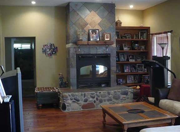 Awesome custom home with amazing features. Kitchen has chiseled travertine, beautiful cabinets and a large work area. Bathrooms feature slate, tumbled marble and travertine. Master bathroom shower has custom design and duel shower heads. The living area has a fireplace with Colorado cobblestone and hand scraped Brazilian wood floors. Home also has a recreation room and home office. There is also a 42 X 30 shop included. This is a must see! Sq. ft from blueprint is 2181 which varies from courthouse.