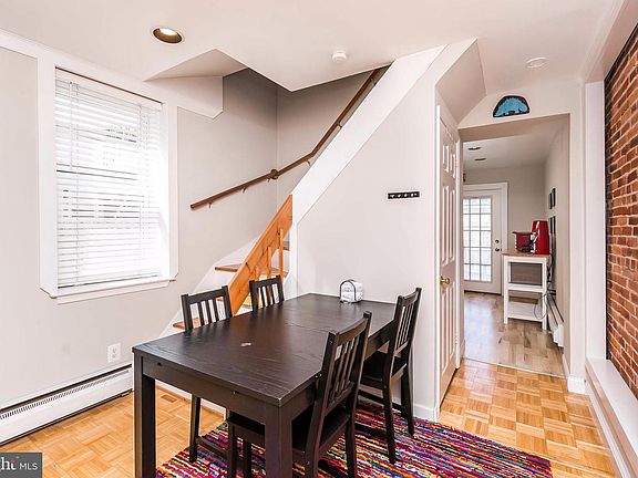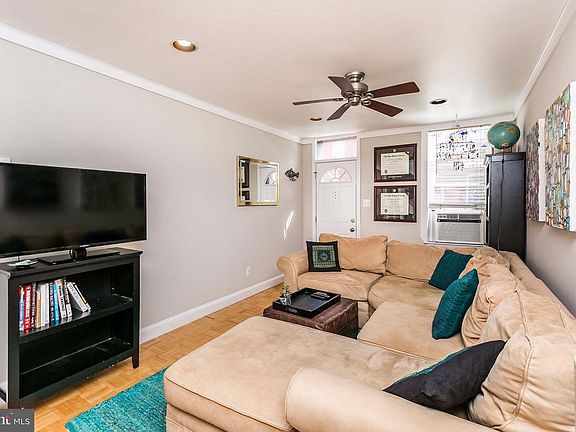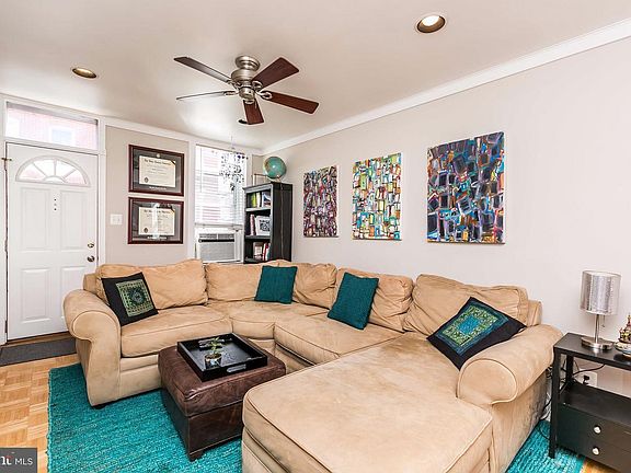 Outstanding Locust Point end-unit with PARKING! Brick front home with spacious living/dining room. Bright kitchen has sliding glass door to private, fenced patio and easy-to-access parking pad! 2nd floor has 2 separate bedrooms with good closet space and hallway access to full bath with skylight. Lower level has plenty of storage space. Close to parks, shopping & easy access to I-95.