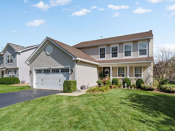 Welcome to 1448 Sedge Pass Lane, a beautifully updated 4-bedroom home designed for both comfort and everyday living. With over 2,000 sq. ft. plus a full basement ready to make your own, this home offers plenty of space to spread out and make memories. The heart of the home is the remodeled kitchen (2019), featuring quartz countertops, sleek KitchenAid appliances, and a thoughtful layout perfect for both weeknight dinners and weekend entertaining. In 2025, additional built in cabinets and a stunning coffee bar with a quartz waterfall edge was added, a cozy corner that's sure to become your morning favorite. Enjoy peace of mind with updates already done for you: new laminate flooring (2022), stylish light fixtures, new garage/front/sliding doors, and a freshly designed stamped concrete patio with a brick firepit that's ideal for summer BBQs and evenings under the stars. Don't forget the owned solar panels (no payments!) that keep utility costs low. This home doesn't just shine inside; step out to a professionally landscaped yard, or take a short walk to the clubhouse, pool, ponds, and walking trails. It's a community that truly feels like home. Updates include: Kitchen remodel (2019), Coffee bar and built in shelving (2025), Stamped concrete with brick fireplace (2017), Garage door and front door (2020), Laminate flooring throughout first floor (2022), Light fixtures throughout first floor (2022), Hot water heater (2019), Kitchen sliding glass door with built in blinds (2020), Refrigerator (2022), Paid off solar panels, Back up sump pump.