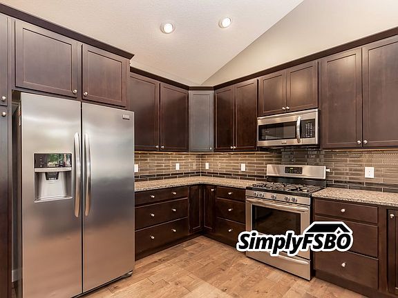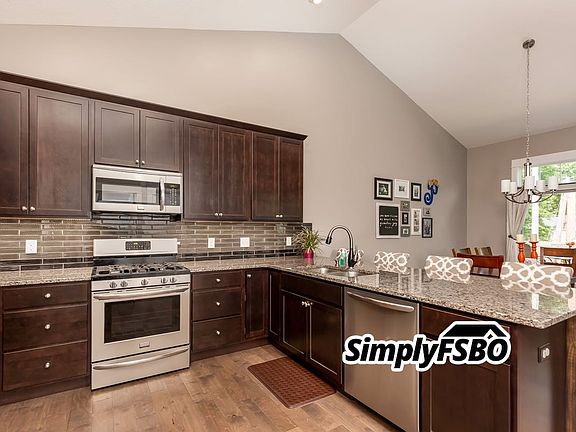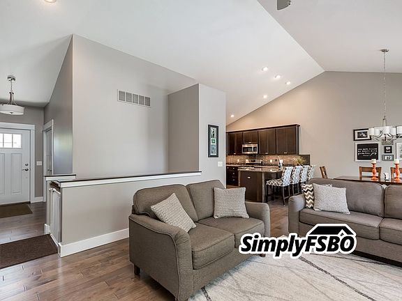 This "LIKE NEW" meticulously maintained 4 bedroom, open concept ranch with attached two car garage. Features a zero-entry floor plan, 3 ft wide doorways throughout and a cathedral ceiling and wood floors in the open concept great room, dinette and kitchen area perfect for entertaining. The kitchen offers ample work space on beautiful granite countertops. Master bed offers a 10 ft tray ceiling, ensuite bathroom with w in shower and 8ft x 6ft walk in closet with ample storage space. Additional main floor bedrooms and full bath are located across from the master. Finished lower level is ideal for entertaining, relaxation or recreation. The family room features a custom wet bar with built in refrigerator and shelving. A fourth bedroom with backyard access, full bath and bonus room with endless possibilities is also located on this level. The outdoor space offers attractive landscaping and a semi-private yard ideal for outdoor activities. Located near JFK Elementary & Duck Creek bike path.