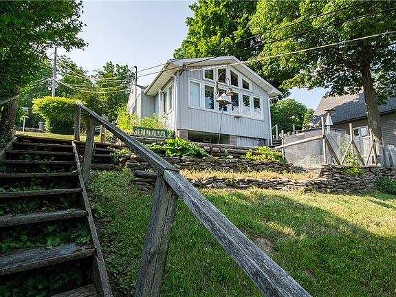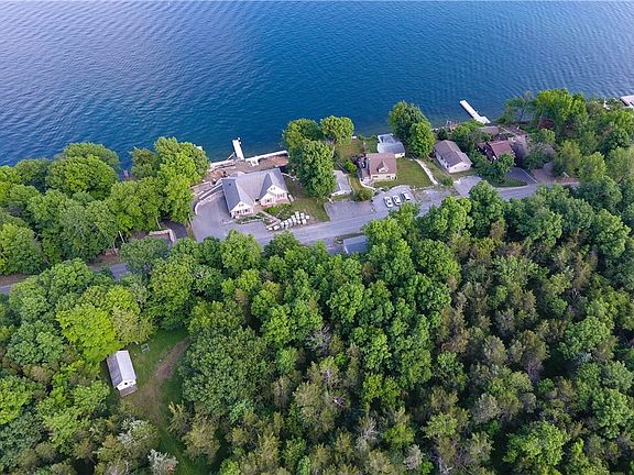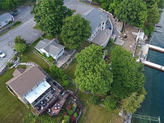 One year round residential with an additional cottage all on Lake Ontario! The main house features two bedrooms, one bathroom, a mudroom, beautiful tongue and groove vaulted ceiling and big windows that allow for lots of natural light and water views. The heated water line pump ensures that you have access to hot water year-round, and the generator hookup provides peace of mind during power outages. The cottage, with its exposed beams and woodwork, offers a cozy and rustic atmosphere. It includes a dining/kitchen area and an open living room with large windows overlooking the water. Upstairs, you'll find two bedrooms and a full bathroom. With a little tender loving care, this cottage and deck/boat-slip could become an irresistible retreat. Across the road, you'll discover over an acre of land that includes a garage and a heated workshop, providing ample space for storage and projects. Additionally, up the hill, there's a bunkhouse with electricity, which would make a fantastic space for kids or teenagers to enjoy their own separate area. This property offers the opportunity to create lasting memories with your family and enjoy the beauty of Lake Ontario.