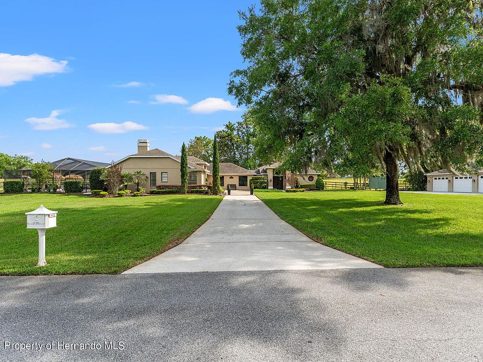 A RARE FIND!! A CAN'T MISS!! THIS ONE HAS IT ALL!! Executive style home with Pool, an attached in-law (624 sq foot), detached 3 car 864 sq foot garage AND acreage in the sought after neighborhood of Dry Creek Estates!! This stunning home is well maintained and move in ready! Upon arriving you will notice the gorgeous curb appeal with stylish landscaping and paver front. The beautiful iron gate welcomes you home as you enter to the stylish living room gorgeous hardwood floors, high ceilings, a wood burning fireplace and French doors to lanai!