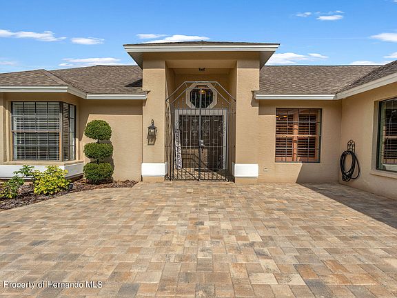 The Primary bedroom boasts GIGANTIC walk-in closet, pool access, and en suite with granite dual sink vanity, separate shower and a soaking tub! The Kitchen has wooden cabinets, gorgeous countertops, stainless steel appliances, Hydro guard RO water filter in sink and a breakfast nook offering a picturesque view of the pool! Layout also features a formal dining room with plantation shutters. Split plan with two additional nicely sized bedrooms. Bedroom 2 also offers pool access. Laundry room features plenty of customized storage!