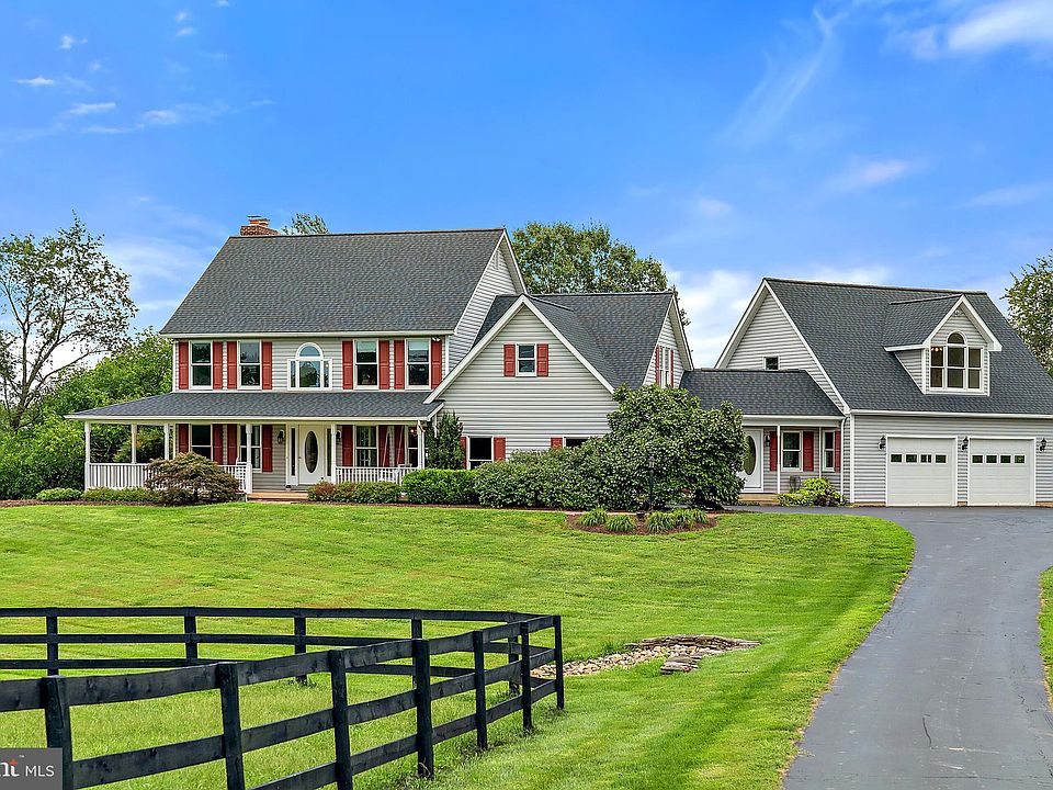 Welcome Home to 14480 Woodstar Ct., Leesburg VA 20176, a Custom Athey Built Farmhouse in Beautiful Loudoun County VA. Verizon FIOS High Speed Internet is Here, No HOA, and Your Own 7.63 Acres Partially Fenced and Freshly Painted. This Beautifully Well-Designed 4,517 Finished Sq. Ft Home Includes 4 Bedrooms, 4 Full Bathrooms, Kitchen with Eat-In Dining Area, Large Family Room with Fireplace, Formal Living, Dining Room, Office, Laundry on Upper Level, Walk-In Closets, Partially Finished Basement with Wood Stove with Walk-Out Access to Backyard, a Standard 2 Car Attached Garage, and a Second Attached Oversize 2 Car Garage. This Home also Includes a 1 Bedroom Apartment for In-Laws, Guest, or Rental Opportunity that Includes a Full Kitchen, Laundry, and Living Room. Wait There is More!!!! This Property is Perfect for the Horse Enthusiast as it Includes a 7 Stall Barn, Tack Room, Wash Stall, Feed Room, Huge Hayloft for Storage and Riding Ring. This Home is Conveniently Located Within Nearby Shopping, Restaurants, Attractions, Commuter Lot and/or Easy Commute to Northern Virginia, Maryland, and Washington DC. This is a MUST-SEE Home; You Do Not Want to Miss Out on This One!