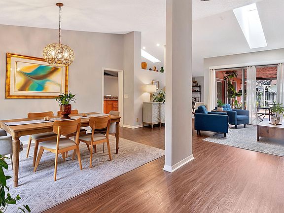 This exquisite 4 bedroom, 2 bathroom, pool home is located in the desirable, non HOA, neighborhood of Sugar Pond Manor. Zoned for Binks Elementary! Step inside and be greeted by an open and airy floor plan. The well-appointed kitchen features modern appliances, ample counter space, and a convenient breakfast bar, making it a chef's delight. The inviting living room is perfect for relaxing evenings or hosting gatherings with friends and family. The spacious bedrooms provide comfort and flexibility, ideal for creating a home office, guest room, or play space. Step outside to your own private paradise - a stunning screened-in pool area complete with a sparkling pool, perfect for cooling off on sunny days. Situated on a corner lot, this home provides extra space and a sense of seclusion.