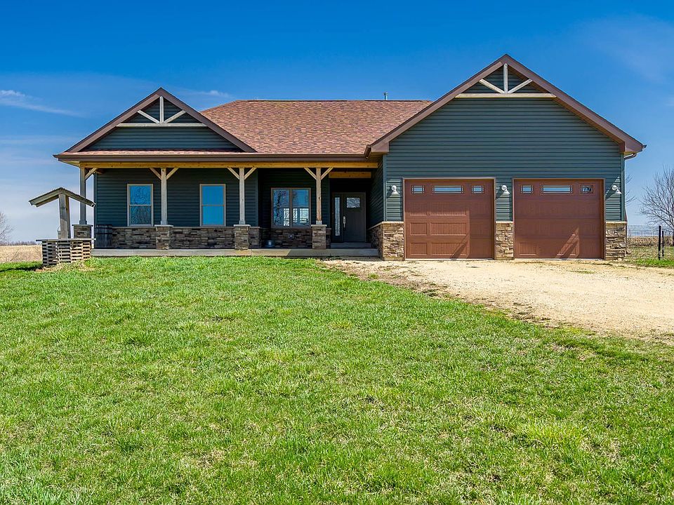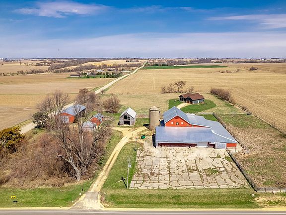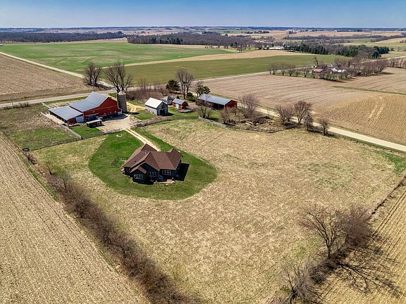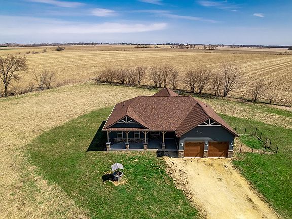 This 2-year-old Ranch style home with 2 bedrooms and 2 full baths on 7 acres is located in the Winnebago School District and is waiting for you! From the covered porch, you walk in the front door right into the living room and kitchen with wood floors, walk in pantry, granite countertops and a huge granite island! The Master bedroom has it's own bathroom and massive walk-in closet! The Master bathroom has a soaker tub, walk in shower and double vanity. The second bedroom is down the hall next to the second full bath. The dining room is right off the kitchen and has lots of natural light. The first floor laundry room is near both bedrooms and makes laundry a breeze! There is a radon mitigation system, egress window and is set up for a bathroom so you can finish it to your liking! There are also outbuildings for plenty of storage. The 2 story barn has a game room on 2nd story and a bar area perfect for gatherings.
