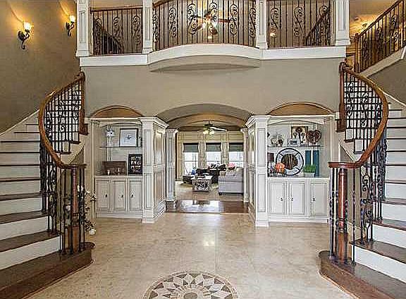 Sophisticated yet comfortable family friendly floor plan. Grand entry with dual curved staircase, built-ins throughout, guest suite with private bath on level 1, game with wetbar & separate theater up. Hardwoods, travertine, chisled granite, marble more!