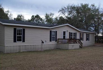 Here’s your chance to own your own little hideaway. 5 acres with heavily wooded buffer along county maintained road ensures your privacy. Nestled at the back of the property is this lovely 4 Br/2 Ba Horton manufactured home, built in 2004. This free-flowing floor plan is designed to utilize every square foot of living space. The well-appointed master suite is located off the formal living room at the front of the home. This generous space includes a retreat, which can double as an office or nursery, huge walk-in closet and master bath with dual vanities, garden tub and separate shower with 2 seats. The spacious eat-in kitchen features upgraded cabinetry & fixtures and appliances, including microwave and dishwasher. Adjoining the kitchen at the back of the home is the family room highlighted by a rock-faced wood burning fireplace with built-in bookshelf. 3 ample-sized bedrooms are situated off the family room and share a full bath with linen closet. 4th bedroom has new flooring. All windows are double-pane and fold down for easy cleaning. New wooden blinds throughout most of home. Oversized laundry room with additional storage space. 10x24 deck overlooks backyard. Nearly 1 acre in grassy homesite with scattered shade trees. No deed restrictions with this one. High and dry! Only minutes to the Suwannee River, Charles Springs and public boat ramp. Asking $72,000. Brokered And Advertised By: Suwannee Valley Real Estate Listing Agent: Sam Geaslin