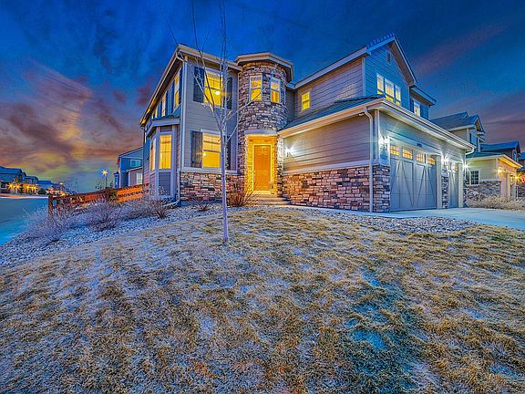 Interested in this property? Call Chad Griffith at 303-726-0271 to schedule a virtual or in-person showing! Corner lot in coveted Stepping Stone! This well-maintained 5 bed, 4.5 bath home greets you with beautiful wood-tile floors, tons of natural light & an open layout, ideal for entertaining. Home cooks will love the gourmet kitchen featuring granite counters, white cabinetry, custom backsplash, large center island, pantry & SS appliances. Cozy up by the fireplace in the spacious family room. Formal dining w/ grand vaulted ceilings & butler's pantry. Retreat to your master suite boasting a 5-piece bath & walk-in closet. 3 additional large bedrooms w/ walk-in closets & 2 add’l bathrooms round out the upstairs. Upstairs laundry for homeowner's convenience. Fully finished basement with private 5th bedroom & 3/4 bath. Relax year-round on the covered patio or cozy up by the firepit in the backyard. Low-maintenance living w/ turf in back yard. Ideally located minutes from neighborhood parks, community pool, schools & daily conveniences. *Book your showing today*