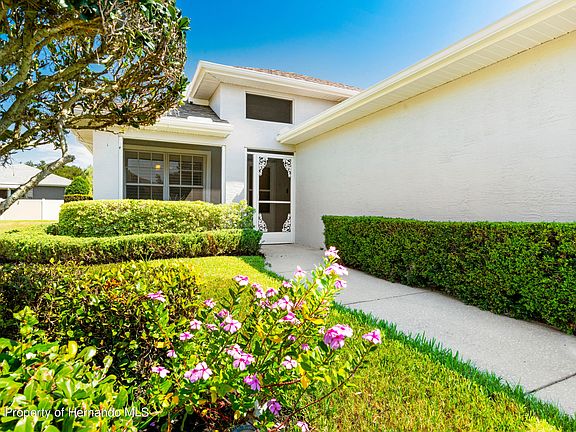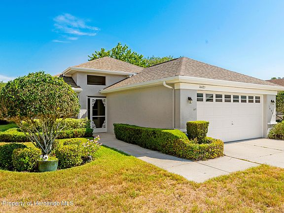 Welcome to 14485 Tamarind Loop, Spring Hill, FL 34609! This stunning residential house offers a screened-in front porch and front yard, perfect for enjoying the Florida sunshine. With 2 bedrooms and 2 full bathrooms, including a master bedroom with custom his & her closets, plantation shutters, and a ceiling fan, this home exudes comfort and style. The master bathroom features double sinks, a spacious stand-up shower, and linen closets for added convenience. The second bedroom boasts plantation shutters, a ceiling fan, and a custom built-in closet. The second bathroom includes a built-in linen closet, bath-shower combo and exhaust fan. The spacious and beautiful kitchen has a double sink with a window box, granite countertops, plantation shutters, refrigerator, dishwasher, stove, built-in microwave, and a kitchen pantry. The living room and dining room provide ample space for entertaining. The garage can accommodate 2 cars, and the fridge in the garage is included in the sale. Throughout the home, you'll find the same beautiful tile flooring, adding to the overall charm. The spacious great room with vaulted ceilings opens up to the enclosed Florida room with a mini-split and a ceiling fan creating a perfect space for family gatherings, entertaining or relaxing. Located in the heart of Hernando County, this home offers easy access to the Veterans Expressway, Suncoast Trail, Tampa, and the airport. The Silverthorn community features a golf course, community pool, a clubhouse, a community center, pickle ball, basketball, tennis courts and parks. HOA features include gated security, paint maintenance every 7 years, lawn care with pest control, cable TV, and high-speed internet. Additional features of this home include a new roof installed in 2018, a back roof over the Florida room in 2019, fresh paint in 2024, a new water heater and garage door in 2023, a patio pad in 2019, custom his & her closets in 2023, and floor tile throughout in 2018. Don't miss out on this incredible opportunity to own a piece of paradise in Spring Hill!