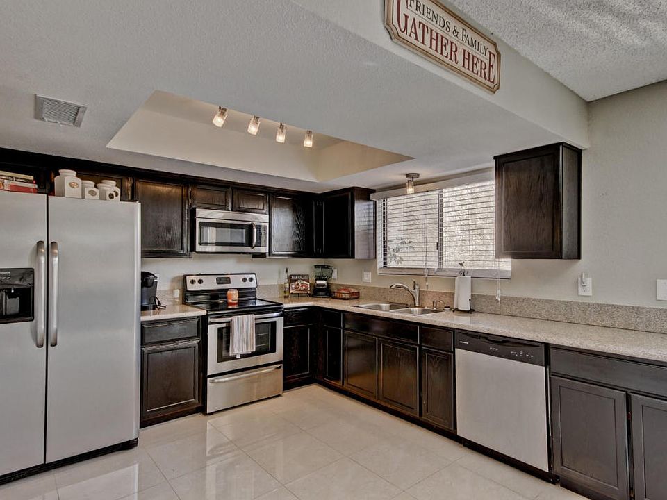 Nicely remodeled townhouse in a great location! Marble-like tile floors throughout the first floor and upstairs bathrooms with brand new carpet 2013 on the stairs and in the bedrooms. Master walk-in closet, powder table, and Marble-like tile surround standing shower in the Master Bath. Upstairs hall bath has new tub (2013) and marble-like tile surround shower. The kitchen has stainless steel appliances & granite counters (2013). The large laundry room sits next to the downstairs remodeled half bath and has wall cabinets that could be used as kitchen pantry cabinets or storage. Upgraded lighting fixtures * 2-car garage is just at the end of the Brick paver patio area as you go out Recently installed double french doors. Listing agent related to sellers.