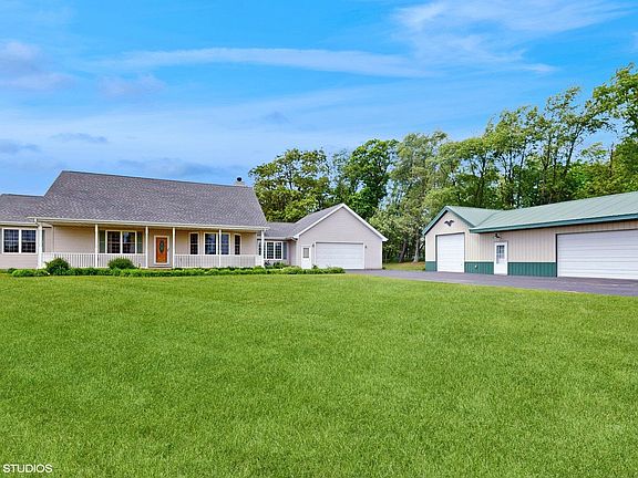 Beautiful custom built ranch home offering 2100sf of living space on 1acre of land. This 3 Bedroom/ 2 Bath home features 9' Ceilings, Beautiful Hickory Floors, Ceramic Tile, Custom Merillat Cherry Kitchen Cabinets, 6 Panel Doors, Wood Burning Fireplace. New Roof in 2024. Whole house fan. A 30 x 56 heated pole barn that features concrete floors, workshop, and plenty of space for toys. 18 x 22 Shed out back for extra storage.