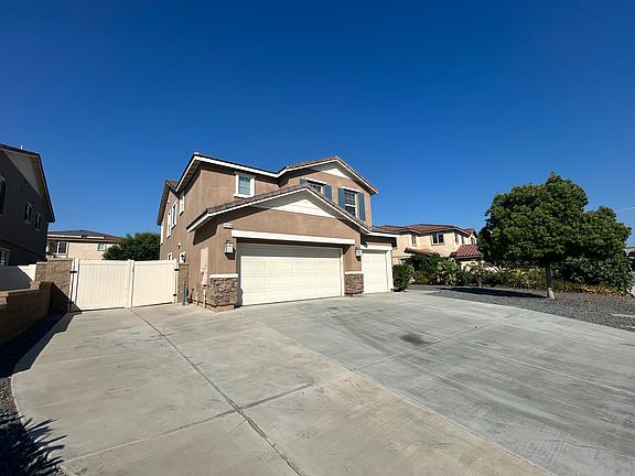 This spacious home features 5 bedrooms, 3 bathrooms, and a 3-car garage with full RV access complete with sewer and electrical hookups. It is completely repainted and ready to move-in. The expansive Great Room with a cozy fireplace is perfect for entertaining. The upgraded kitchen includes stainless steel appliances such as a double oven, microwave, and gas range, as well as granite countertops, rich dark cabinets, a butler pantry, and a large walk-in kitchen pantry. The first level also includes a formal dining room, a main floor bedroom, and a full bathroom. On the second level, you'll find one of the largest bonus rooms with plenty of windows to let the light shine in. The Master Bedroom Suite features a spacious master bathroom with dual sinks, a large soaking tub, a separate shower, and an amazing walk-in closet. All secondary bedrooms are very spacious and offer plenty of closet space. The backyard includes a storage shed and a custom alumawood patio cover with ceiling fans and recessed lighting. We have very nice neighbors and plenty of street parking. Come see all this wonderful home has to offer! Minimum 1 year lease. Landlord prefers 700+ FICO score. Utility paid by renters. Accepts RentSpree report, once approved by the landlord, we'll ask for the credit report.