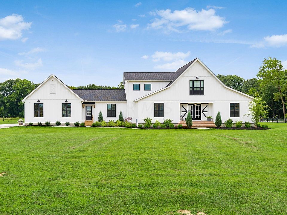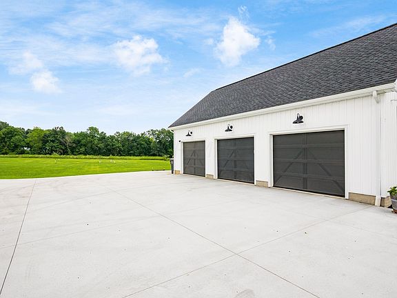 Privacy abounds in this custom built 4 BR, 3.5 Bths, County Estate on 7.18 manicured acres. Neutral throughout with many custom features. Great RM with gas fireplace & beamed ceiling. Contemporary white woodwork throughout marries the modern w/the quaint. His/Her offices provide plenty of personal space for working from home. Chefs kitchen with Quartz countertops, Amish cabinetry, wooden vent, center Island/3 sided seating. Spacious dining area opens from kitchen with ample seating for large family gatherings. Private In-law/guest suite is a self contained efficiency apartment. Upstairs the large Master suite has his/her walk in closets and huge master bath. Full BSMT & barn provide abundant storage or entertaining space.