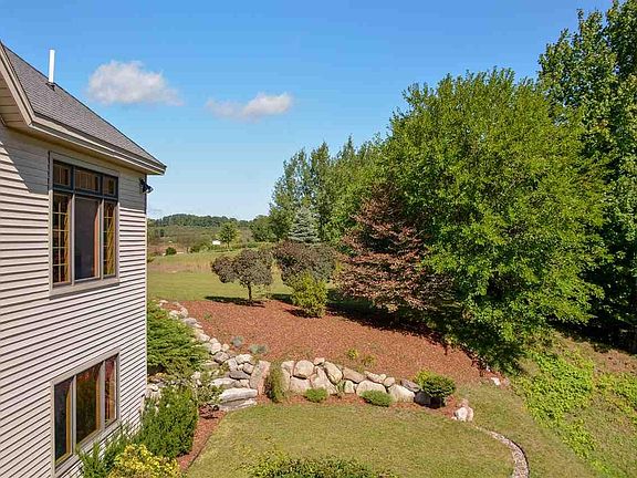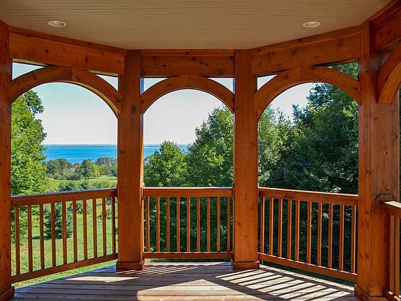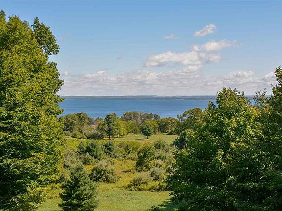 This beautifully detailed ranch home sits on a lush ten acres nestled on the Old Mission Peninsula. Enjoy marvelous views of East Grand Traverse Bay from nearly all windows in the house. This home features grand cathedral ceilings, two fireplaces, hickory hardwood floors, and a large master suite w/ walk-in closets. Enjoy an open kitchen with granite counter tops and a formal dining room. Energy star appliances, efficient windows, and insulation work in tandem with geothermal heating and cooling to give you warm winters at a low cost. The unfinished lower level is a walkout basement with fabulous water views and a gas fireplace. The exterior features a covered porch, deck, patio, and balcony, all landscaped. Surrounded by numerous wineries and small local farms and only 12 miles to downtown Traverse City.