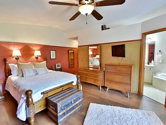 Pride of ownership shines in this one-owner home, thoughtfully designed with 4 bedrooms, including 3 on the main level, and two private primary suites. The lower-level suite is a spacious 400 sq ft retreat featuring dual closets and a private spa-like bath with a jacuzzi jetted tub. The updated kitchen showcases quartz countertops, stainless steel appliances, and a newer sliding glass door that opens to a newer 16x16 deck overlooking the beautifully landscaped yard. Downstairs, the finished walkout basement invites relaxation with a cozy gas fireplace, perfect for Minnesota evenings. Enjoy the convenience of being just a short walk to Lions Park and Sand Creek trails, while Bunker Beach Water Park, Bunker Park Stables, and Bunker Hills Golf Club are only minutes away.