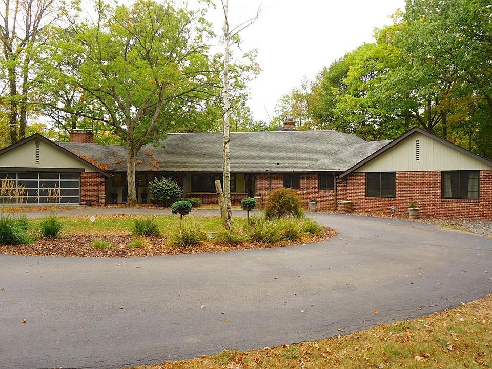 Sprawling contemporary, all brick ranch nestled into 1.7 wooded acres at the end of a private road. Located just steps to Doctors Park. This elegant home features an open concept floor plan with walls of windows facing the private backyard with brick paver patio, perfect for entertaining. Many recent updates including new roof 2014, energy efficient boiler 2016, all new carpet and paint, upgraded kitchen appliances. Radiant in-floor heat and new central air. Four spacious main level bedrooms, 2 are en suite. Upper level rec room and bonus room plus great storage. Main level laundry/mud room.