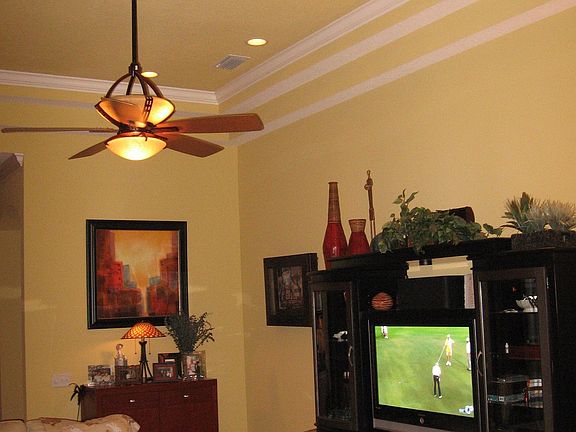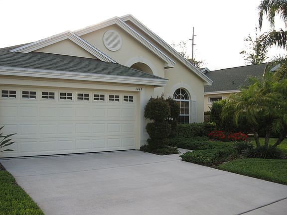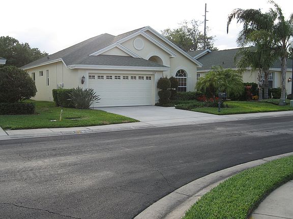 You'll be surrounded by graceful living in this magnificent gated community of St George; less than a 10-minute walk to the Fox Hollow Golf Club and its restaurants. This 2-bedroom, 2 full bath, 2 car garage home is no exception. Exquisitely maintained inside and out, you will be drawn to the open layout and all the natural light that saturates the interior. Outdoors, lush grasses are offset by curved flower beds rich with mulch and a lovely selection of trees, shrubbery, and impeccably manicured hedges. The pavered drive is a stylish touch with the grounds pre-wired for landscape lighting. Nestled in the tranquil backyard is a lanai area that offers plenty of shade but is also screened to create the ideal ambiance. Extended and pavered in 2016 it offers entrée to the yard and from the house. The front door is shaded by a barrel-fashioned portico while the foyer makes for a grand entrance topped with stunning millwork on the ceiling. Classic french doors introduce versatile space that can serve as a home office or study. Because new laminate flooring was installed in 2015, you can also utilize this as space for a sublime personal gym or private yoga studio. Special touches throughout elevate the interior design: crown molding, a spectacular tray ceiling, curved archways dressed in beautiful detail, and Calico draperies that adorn the windows. A NEW Bryant AC was fitted in 2018. The eat-in kitchen's wide-open galley style features tons of space, a huge countertop and sink with plenty of room for the casual dining bar defined by statement pendant lighting. Besides high hats, natural light floods in from the breakfast nook's three windows that are outfitted in blinds that may be adjusted from the top or the bottom to suit any time of day. The windows above the cabinetry shine down on the granite counters and the dishwasher, range, and microwave installed in 2015, as well as the new refrigerator installed in 2018. The laundry room is also lit by a window and boasts a handy storage shelf. You'll find the living room both expansive and adjacent to the kitchen, providing that Great Room feeling. This opens up the floorplan but also makes it feel warm and welcoming. Besides the gorgeous bamboo flooring that was installed in 2019, directly from its striking foyer there are views straight through to glass-paned french doors that lead to the al fresco entertainment center. The formal dining room is illuminated by a picture window and is also situated to make it feel part of the space, but it's separate enough to stage special-occasion dining or be another idyllic place to entertain guests and clients. As for the master suite, the sunken garden tub is an oasis. Accompanied by high-end fixtures, dual sinks, and a selection of well-placed windows, a separate shower room and commode are behind a closed door. In addition to a well-lit, walk-in closet that feels large enough to be another bedroom, the master itself is elegantly appointed with two sets of doors to the outside; the perfect retreat after a long day. The HOA fees cover, lawn, shrub/tree care & fertilizing, as well as the painting of the home's exterior. Close to the finest in Trinity's shopping and its eclectic dining options; you'll feel right at home.