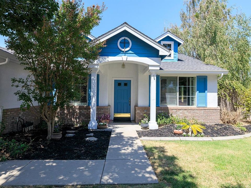 Original owners and First time on market in beautiful ROSE LANE. Don't miss out on this Single story Cape Cod Beauty with an OVERSIZED LOT! Over 1/3 ACRE! RARE find in neighborhood! New exterior paint 2021. Enjoy the refreshing and heated custom Pool and Spa along with 5 Bedrooms, 3 Ba, 2319 Sq Ft. Great for entertaining with Open floor plan and large patio. Lots of light with abundance of windows in Family room and large kitchen window. 5 Gas burner stove, Glass & wood Cabinets, Island, Cozy cobblestone style Fireplace, Cathedral ceilings, Crown molding, Ceiling fans, Master suite w/ Jetted tub in master bath. Slider access to Spa & Pool. Newer carpet 2020 in all bedrooms. This hidden gem sits on a 15,276 SF ft LOT. Owners recently merged side vacant lot into one. Just think of all the toys, Rvs and activities in your new backyard! Walk to School, Parks and Shopping. Nearby access road to HW 99. Enjoy beautiful backyard Sunsets in the wide open sky of the Central Valley. Come see soon