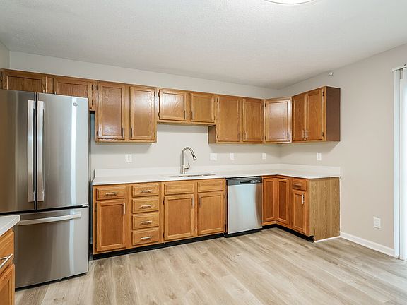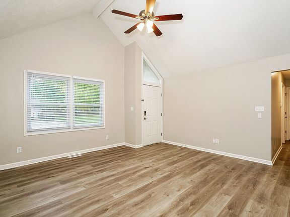 Please note, our homes are available on a first-come, first-serve basis and are not reserved until the lease is signed by all applicants and security deposits are collected. This home features Progress Smart Home - Progress Residential's smart home app, which allows you to control the home securely from any of your devices. Want to tour on your own? Click the "Self Tour" button on this home's RentProgress. This attractive rental home in Franklin, IN gives you 1,144 square feet of space with three bedrooms and two full baths. The front door has an interesting trapezoidal transom window, and the living room it opens into sports a ceiling fan, a vaulted ceiling, and wood-look vinyl plank flooring. The eat-in kitchen has plenty of cabinet space, quartz countertops, and a gooseneck, pull-down faucet. Sliding glass doors open to the patio, and another door gives access to the one-car garage. The main bedroom has a walk-in closet, an en suite bathroom, and a window that looks out on the spacious backyard. Hurry and apply for this lovely home today.