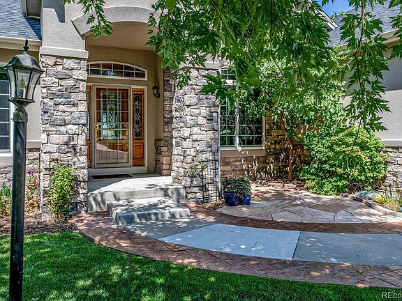First impressions are everything and you will be delighted when you enter this home and take in the views out the back yard. This home has spectacular curb appeal. This semi-custom home is situated on the 16th hole of the golf course overlooking the lake and the Front Range. The grand foyer has inlay travertine tile. The Study offers built-in cabinets and is perfectly situated at the front of the home with an abundance of natural light filling the room. The main level living space is open concept with the expansive Family Room and Kitchen being the heart of the home. The updated Kitchen offers espresso colored cabinets, slab granite counters, custom back splash and a full complement of stainless appliances. The Butler's Pantry is situated just off the Dining Room for convenient entertaining. The formal Dining Room features a tray ceiling and is perfect for hosting family and friends for those special occasions. The spacious Owners Retreat offers the ultimate in privacy and features a luxurious 5 piece bath, spacious walk-in closet and a separate deck. An additional bedroom, bath and laundry room with a utility sink and an abundance of cabinetry complete the main level. The lower level offers 2 additional bedrooms, 2 baths, a game room, exercise room, fireplace and a bar with a beverage refrigerator. The outdoor entertaining space features a covered patio with remote controlled shades, built-in gas BBQ kitchen, gas fire pit, a garden that will delight anyone with a green thumb, and a fully fenced backyard. Easy access to I-25, and historic downtown Castle Rock. Historic downtown Castle Rock offers many options for shopping, restaurants, and activities at Festival Park. The newly opened grill at The Oaks in Plum Creek is the perfect spot for casual meals that you can enjoy in your new neighborhood. Only minutes from the Miller Activity Center with something for the entire family. Make sure your Realtor provides you with the list of all the features this home offers.