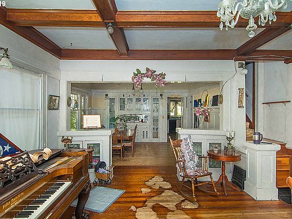 Beautiful early century craftsman. Originally one of the finest homes in the area. Very ornate architecture. Very solid condition. Large open living room, straight grain fir floors, period light fixtures and high ceilings throughout. Large kitchen-tons of cabinetry. Cute guest/rental apartment included (always full). Huge front porch and large covered rear outdoor space. Full basement not included in footage. Must see to believe
