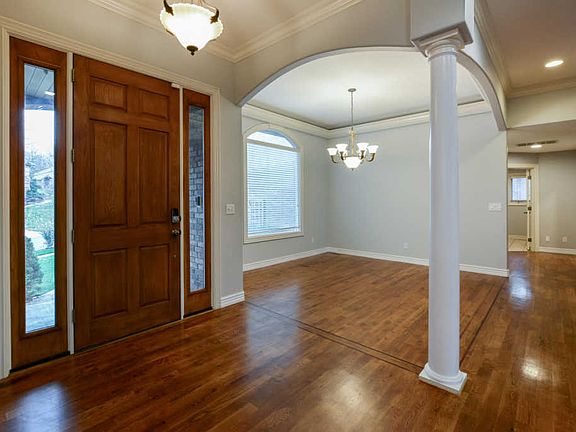 Beautiful all brick walkout basement home in Stone Meadow. The exterior features gorgeous curb appeal, a large fenced backyard with mature trees, two good sized decks with a patio below and a great firepit area. Inside you'll find beautiful hardwood floors, oversized millwork, fresh modern paint, Zoned Heating and Air, 3 gas fireplaces with one being in the large office on the main floor, a formal dining room that's open to the living room, 3 total living areas and an oversized wet bar in the basement. The eat-in kitchen boasts granite countertops, tons of gorgeous solid wood cabinetry, tile backsplash, high end stainless steel appliances and an island with permanent power. Finally the master suite is large and inviting with a tray ceiling, dual vanity, two walk-in closets, and a separate walk-in shower and jetted tub. This is a must see home!!!