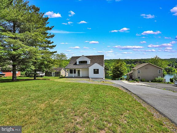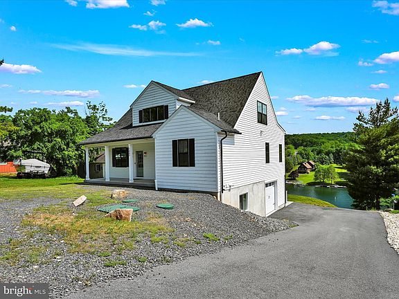 Just in time for summer, this beautiful home with gorgeous lake views is available for you. Built in 2020, this lake front home is bright, open and airy. Offering 4 bedrooms and 3 1/2 baths on 3 levels, almost every room has a water view. Stepping in the front door, you are greeted with an open concept living room/kitchen with hardwood floors and a large welcoming white quartz island for gathering. Stainless appliances and plenty of cabinet space compliment the kitchen while a mantled propane fireplace lends cozy charm. The slider door leads to a covered composite deck that will amaze you with its view and size. Also, on the first floor is a powder room and a primary bedroom complete with a walk in closet, laundry closet and ensuite bathroom with tile floor and a large walk in shower. Upstairs, you'll find 2 additional bedrooms, with hardwood flooring, sharing a full bath. On the lower level is a 4th bedroom with its own full bath and a family room that opens to a large paved, covered patio and level grassy area. While the home itself is amazing and in excellent like-new condition with its on demand hot water, whole house water filtration system, radon mitigation system and so much more, the main attraction is the Lake! Step outside and wind down the paved switch back path, suitable for driving, to the water's edge where you'll find 2 docks along with a dock house with water and electric. The main dock is generous in size to allow lounging, sun bathing and entertaining. The second dock has room for at least 2 boats to moor. Come see what Lake Life can offer you and settle in time to enjoy the summer.