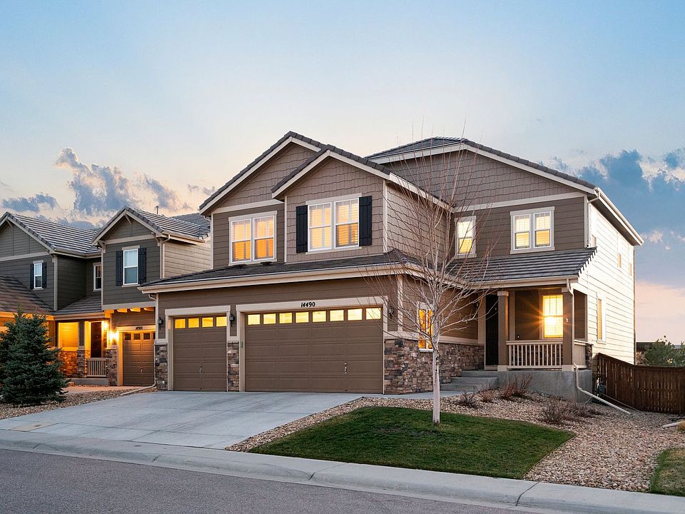 This spacious like new home is available for rent! The giant great room is open to the kitchen and dinning area. The kitchen is fully equipped with all appliances included, a giant island, countertop seating, and amble cupboard space. Enjoy the mountain views on the covered back porch for all the warm weather nights. One bedroom on the main level that makes a great office. Fully finished downstairs with bedroom and ensuite bathroom. Upstairs you'll find the beautiful primary room and remaining bedrooms as well as the loft and laundry room. The primary room has two two walk-in closets and private bathroom with mountain views. This homes location is fabulous. 10 minute drive to Park Meadows Mall, 15 minutes to the Denver Tech Center, and 25 minutes to Denver International Airport. The neighborhood also offers great amenities such as trails/parks as well as a clubhouse conveniently located across the street. Rent includes landscaping. Credit must be 650+, income 3X monthly rent, and no past evictions. Pets allowed with approval and additional deposit. School District: Douglas County Re 1. Elementary School: Prairie Crossing. Middle School: Sierra. High School: Chaparral.