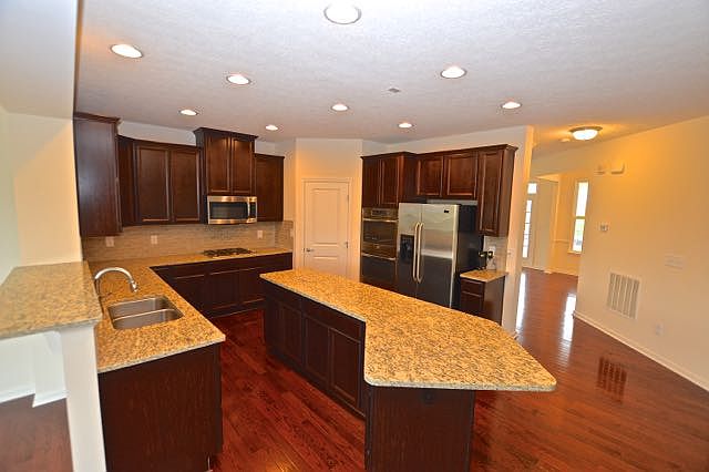 Location location location, this lovely home with pond views has huge cooks kitchen w/ss appliances, granite, tile back splash, island w/breakfast nook, sun room looks out over the water. Total 6 BR w/ large bonus room, main floor BR and BA. Basement offers a home theater & seating. Large master BR suite, upstairs laundry. Professionally landscaped, custom patio w/fire pit and fully fenced.