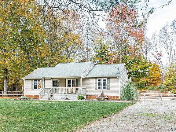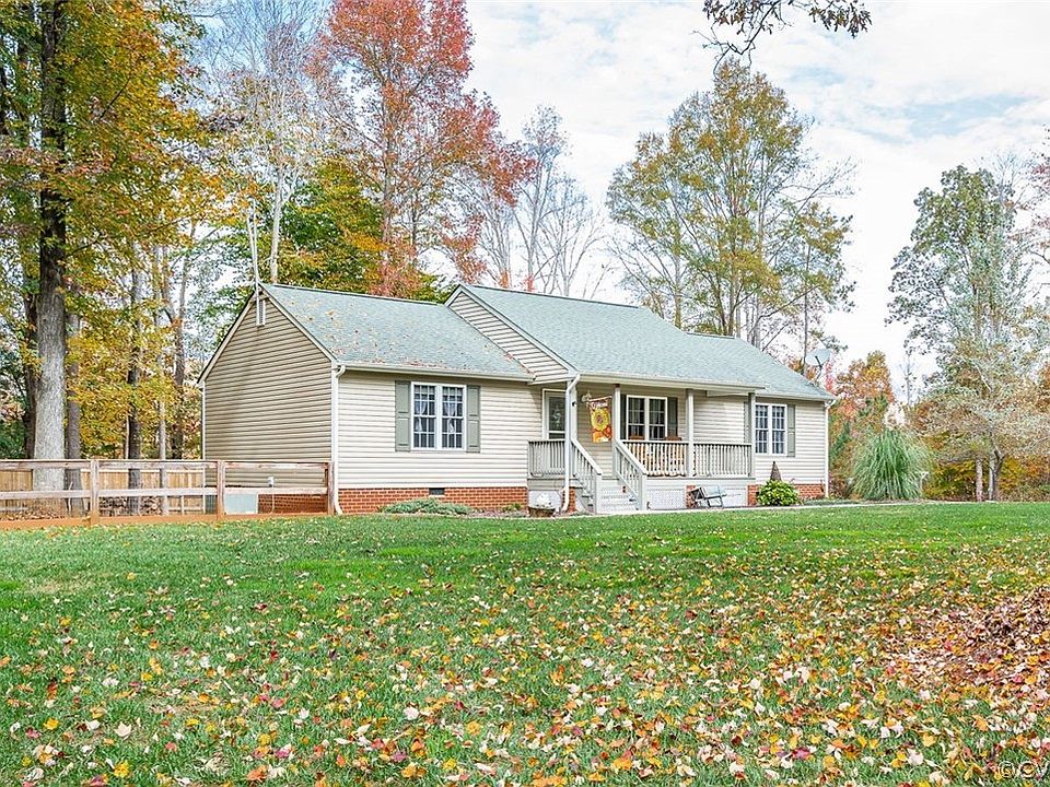 Welcome to 14490 Meade Rd, a little slice of heaven located in the eastern part of Amelia County. The home is located off the road with in a private setting with a well landscaped yard surrounded by hardwoods and pines. The home offers an inviting covered front porch that has been newly painted as well as a private rear deck to share with friends or enjoy a good book. The inside of the home is newly painted and offers a warm and open family room with vaulted ceilings and hardwood floors. The kitchen has a vaulted ceiling and granite counters with tall 48" solid wood soft close cabinets. The primary bedroom has hardwood floors and a updated bathroom with a large walk-in closet. The other side of the home has 2 more bedrooms with Hardwood Flooring and full bath. The back yard is completely fenced in and has a large shed with electric, there is also stone pavers to place tables and chairs and a BBQ. This home is waiting for you, only 20 minutes to Woodlake or Powhatan shopping.