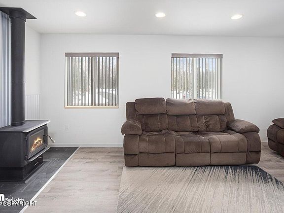 QUALITY CONSTRUCTION & GREAT LOCATION WITH EXTRA CABIN & 4 RV PADS!! Only 4 miles from Talkeetna This well insulated home has two bedrooms and two bathrooms with additional large room upstairs and loft. The home shows like new with recessed lighting throughout and luxury vinyl flooring in subtle grey tones.This solid home has a woodstove, Toyo heat, baseboard heat and supplemental wall heaters installed in the bathrooms to keep you cozy and warm. The home is heavily insulated and has a air moving fan system to circulate air throughout the home. The licensed owner/builder completed the electrical on the home and installed dedicated power at the entry for a back up 10,000 watt industrial generator that is included. Downstairs features an arctic entry with a bedroom and guest bath. The kitchen has a large workspace and features a gas range, built in microwave and the refrigerator is included. The large spacious kitchen features many windows and a slider that exits to a nice covered porch area that could be picnic area, parking and storage. Upstairs is an additional bedroom. The extra large bright and sunny family room is large enough to be split in half, it could be used as another bedroom, exercise room, theatre room the choices are endless. Off the family room there is a large 12x24 foot balcony. An additional finished loft above the family room could also be used for living space another bedroom or storage. The upstairs bathroom is large and roomy with a walk in shower. The home has new paint and quality carpet on the stairs, upstairs family room and bedrooms. Vertical blinds are installed throughout the home. WOODPECKER RV RETREAT has 4 level and gravel 50'RV pads with dedicated 30amp circuits at each site. Common water source, fire ring and a GUEST CABIN. Making this property INCOME PRODUCING. Woodpecker RV Retreat website is included, check it out! https://www.woodpeckerrvretreat.com/ The park hosts many return guests year after year and already has bookings for this summer. The large circle drive with two exits make parking a breeze for large RV's and trailers.