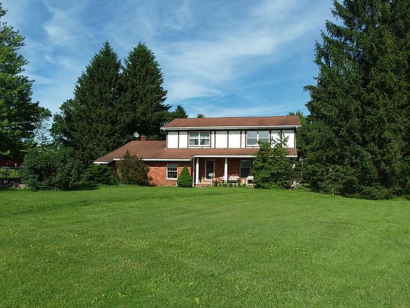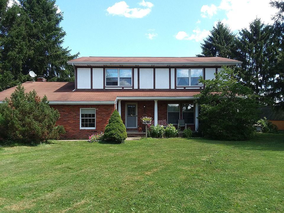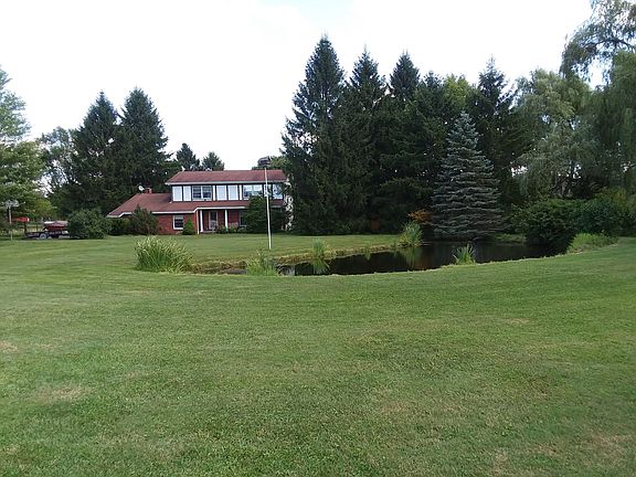 Surrounded by pines and foliage this generous sized Colonial sits on 2+ acres in the West Geauga School District. 4 bedrooms, 2 1/2 bathrooms, Family room with gas fireplace, formal dining room with tray ceilings. Living room with oversized windows. Kitchen with peak through to dinette area. Basement is partially finished with a fireplace that has a wood burning insert. Laundry hookup on First floor and in Lower level. Front covered porch overlooks the quaint pond and the back covered deck overlooks the park like yard. Outbuilding for storage or "man" cave and another storage shed for essentials. 1 Year Americas Preferred Home Warranty included.