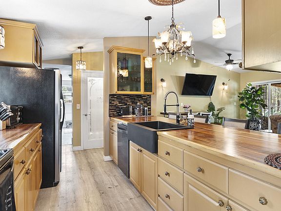 Room for your RV or horses in this beautifully remodeled 3 bed 2 bath home sitting on over 1 1/2 acres-40 minutes from Bend! Manicured grounds are surrounded with lodgepole fencing and steel gates. Fully insulated outbuilding with hot water, cadet heater & rubber flooring has numerous possibilities. Enjoy friends & family year-round on the large, covered patio. Fresh paint inside and out, luxury (waterproof) flooring, newer stove, dishwasher, interior doors & water heater, new garage door opener & many more improvements. Washer, dryer & SS refrigerator included! You'll love the remodeled primary bath with retro soaking tub and the beautiful wood slab counters, large pantry & smokey glass cabinets in the kitchen. Wood/loafing shed has been reroofed & sided. Great separation of spaces in this home made for entertaining & enjoyment, whether it's your primary or vacation getaway! Come make this special property your own.