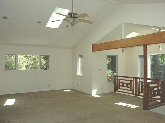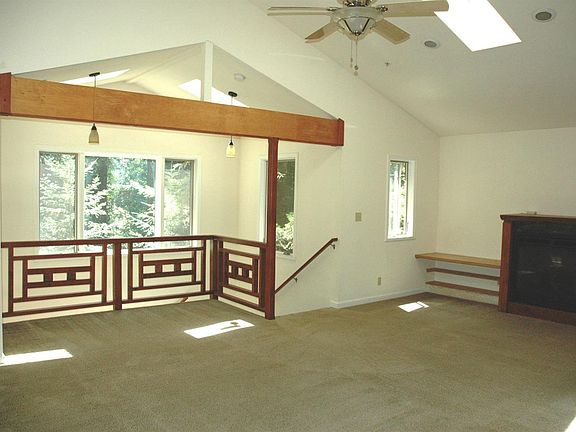 Just what you're looking for at the River! Well built house in a sunny location with parking. Multi-level, open floor plan, large kitchen w/island, corian-type counters, Alder cabinets, black appliances, pantry. Sunny living room, gas fireplace, cathedral ceiling, skylights, custom wood railings, leafy views. Master bedroom has access to the back yard. Light-filled loft. 50-year steel roof. Garage has room for kayaks, boat, tools, tons of storage