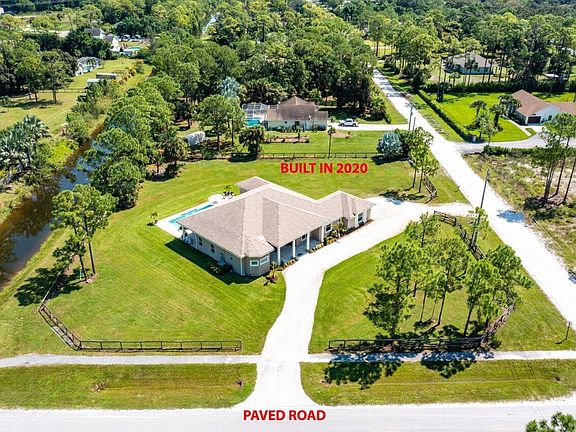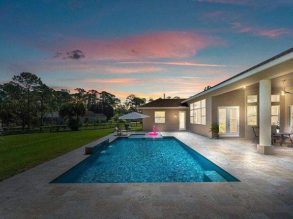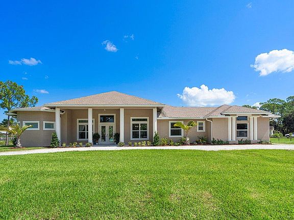 WELCOME HOME to sophistication, serenity, elegance, upgrades galore and executive style living! This stunning 2020 like brand new home features; (5) bedrooms plus den, (4) full baths, (1) 1/2 bath, (2) car attached garage, stunning saltwater pool, a comprehensive one-year home warranty, defines exceptional taste, meticulously maintained, white glove clean, energy-efficient and where simple country living meets luxury. And all of this awesomeness is resting on a premium 1.58 acre corner lot that is and on a paved road with sidewalk. ENTERING the grand 33'x13' covered entry with a 14' ceiling brings you into the 8' double front doors and you are greeted by a spectacular pool view, 10' x 10' foyer, soaring 17' ceilings, spacious open living areas offering an abundance of natural light, ceramic tile wood look plank floors throughout common areas and so much more! PASSING THROUGH you will discover outstanding features such as; upgrades throughout, pool view from virtually every room, grand ceilings and oversized rooms, dream kitchen boasting; 42" solid wood custom cabinets with soft close drawers and doors, Fantasy Brown granite countertops, glass backsplash, energy efficient GE stainless steel appliance package with double ovens, spacious snack bar, walk-in pantry, breakfast nook with picture window overlooking the pool. And hello gorgeous master suite featuring; 13' ceilings, his and hers walk-in closets, 11' x 12' master bath with his and her granite vanities, spectacular walk-in shower with dual rain showerheads and bench, deluxe free-standing roman soaking tub, private water closet and a relaxing pool and green space view looking out the double french doors. You will also discover 8' doors throughout, dynamite split floor plan, beautiful color palette, cabana bath, bathroom niches, fine construction with a flat wall finish and rounded corners, 6" colonial baseboards, 6'x 11' under AC laundry room with cabinets and design that is simply exquisite! STEPPING OUTSIDE brings you to a relaxing paradise featuring; a 34'x15' (430) sqft lanai with 12' ceiling, sparkling 15' x 30' pool with cascading waterfalls, sun shelf and surrounded by a spacious 30'x60'travertine marble pool deck, outdoor speakers, green space galore, pines and palms, fully fenced yard and Seller may consider a landscaping package or credit. Simply, a perfect space for family gatherings, entertaining and outdoor fun! HELLO SAVINGS, PEACE OF MIND AND CONVENIENCE hurricane impact windows and doors, whole home generator, whole home and AC surge protection, R-30 spray foam insulation, 500 gallon buried gas tank with lines to grill and two tankless gas water heaters, security system with (7) Lorex cameras, (2) Cat 6 cables in each room, 2 stage AC system, over 350 loads of fill, 10" above the minimum elevation, 1500 gallon oversized septic tank and lift station, circular driveway, high-speed internet, whole house gutter system and no HOA fees. LOCATION LOCATION LOCATION This gem is tucked away in a superb yet quiet Loxahatchee/Acreage location with shopping and dining just around the corner and nine quaint parks with countless year-round outdoor activities such as; free concerts at the community amphitheater, play grounds, picnic areas with grill pavilions, fishing, fitness trails, equestrian trails, football/baseball/Soccer fields, skate and equestrian parks, basketball/volleyball/racquetball, tennis and is located just minutes to everything one could possibly desire; Florida's Turnpike, I-95, Palm Beach international Airport, fine shopping and dining, arts, entertainment, world class equestrian shows and facilities, beaches, theater, golf, business and economic development, education, green living and much more! COME AND SEE why The Acreage/Loxahatchee is very sought after and take in the fresh country air and peaceful sounds of nature. Build a chicken coop, bring your toys, pets or just about anything your heart desires... The possibilities are endless! Come and enjoy your life away from the hustle and bustle and your evenings floating in the pool gazing at the stars. BE SURE TO CHECK OUT THE VIDEO LINK and run like your pants are on fire, this gem will not last long!