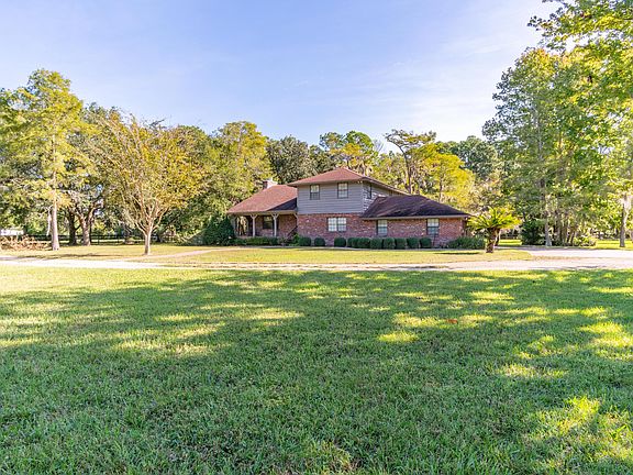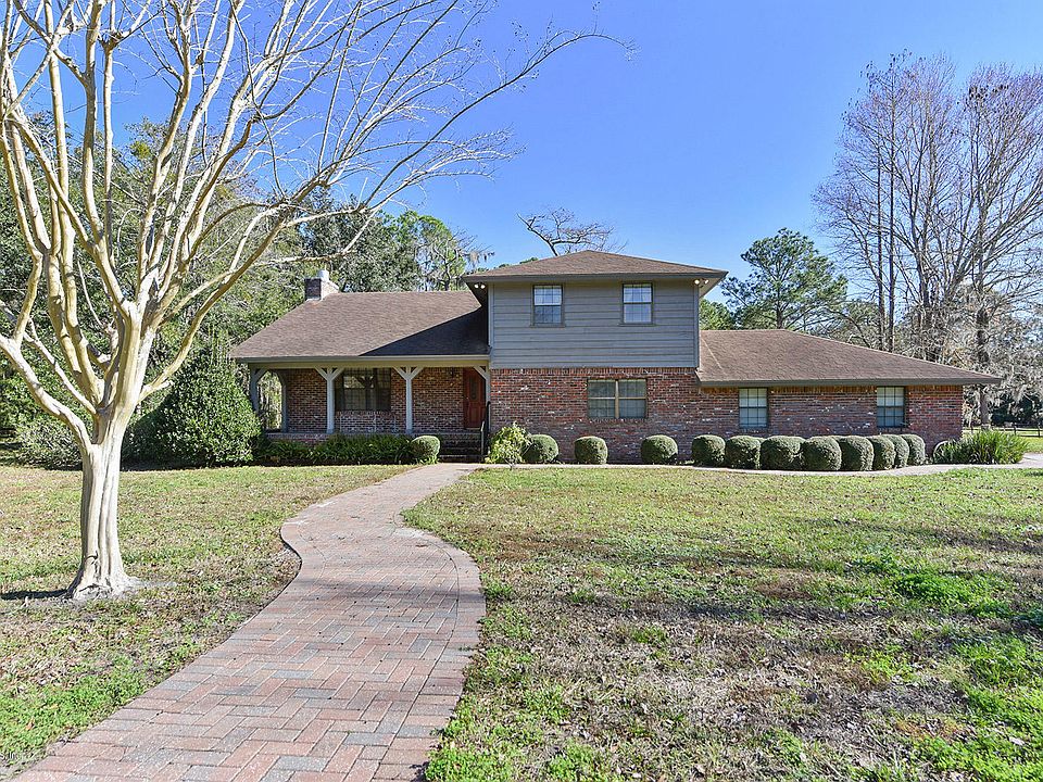 Country estate with an abundance of natural peace and tranquility. Immediately upon entering the property you will feel the unique southern ambiance. Property features two story brick home resting on Approx. 4 fenced acres featuring pond with fountain and barn to house your horses. First floor of home features large kitchen and bedroom with full bathroom. Large, open family room with classy wood beams to vaulted ceiling. Second floor features Owner's Suite with two walk-in closets and large en-suite bathroom. Third bedroom and third full bathroom also located on second floor. The entertainment possibilities are endless with this beauty, see this home today! Convenient location close to the Jacksonville Intl. Airport, River City Market Place, Downtown Jacksonville, Beaches, see this today!