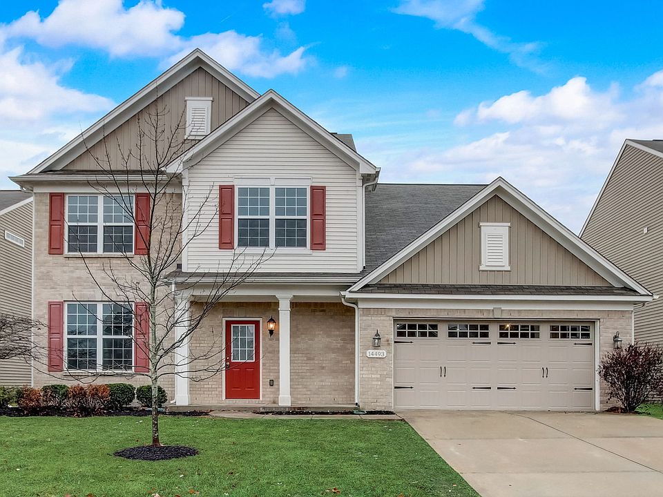 Beautifully freshly painted home with a 3 car tandem garage! Find beautiful staggered cabinets with brand new granite with island and cubby office off the kitchen with all appliances staying in the home. Stay organized with a drop zone off the garage. Spread out with a flex room to make your own or a spacious loft upstairs for easy entertaining. Luxury plank flooring on the main level with brand new carpet upstairs. Huge tray ceiling Owner's Suite with tiled walk in shower and double sinks. Stay active in the community playground & nature park. Perfectly located between Fishers and Hamilton Town Center for shopping dining and community events with easy highway access.