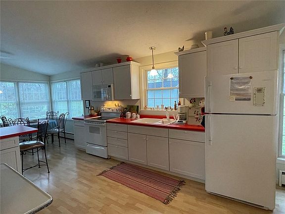 Currently, this is one of a three property family complex, often using this unit as an Air BnB....all three being sold separately or as a unit. Refer to 14496 and 14491 Westside Dr for other two units. This home features a bright & open floor plan. Laundry in the full bathroom. Sparkling lake views. Two bedrooms, Living room, dining bar and additional dining area.... and even a morning room to relax & view the gorgeous sunsets or curl up with a nice book. Vaulted ceilings add to the open feel...along with a wall of windows overlooking a private green space. Large heated shed. Walk to nearby marina, restaurant, yacht club & even a vineyard. Jump in your kayak & paddle over to the state park family sandy beach or enter the expansive Lake Ontario proper. Larger boat? Store your boat at the nearby marina and take a day trip across to Toronto. Footpath ROA to be provided to lake on southern end of property across street if properties are sold separately. Shared blacktop driveway. Currently benefit from Air BnB bookings of 33 days at $200 a night if desired. 2021-05-01