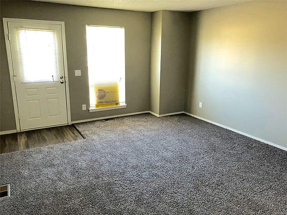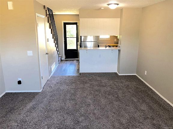 Beautiful end unit Townhome; 2 Bedrooms, 1 Full Bath and Washer/Dryer hookups upstairs; Open Living Area, kitchen, and storage closet downstairs; Back door opens to patio with another storage closet; Home features new paint, new carpet, new window coverings, new hardware, new kitchen and bath flooring; Quartz countertops in kitchen and bath, new plumbing fixtures, new stainless steel never been used appliance package. Community features well-kept landscaping, shared swimming pool, reserved parking space, lots of convenient visitor parking; Walking distance to lightrail station, Some of Aurora's most popular restaurants, shopping, fitness, kids' entertainment, and more!