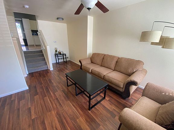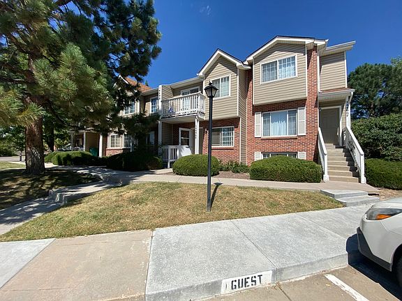Located near the neighborhood's front entry, this light and bright multilevel unit is flooded with light, vaulted ceilings, and two large, separate, primary bedrooms -- each with ensuite bath. The main level is an open living room and powder room are perfect for parties/gatherings. A few stairs then lead to a large, bright, white, eat-in kitchen/dining level. Kitchen sliding doors open to the private backyard patio with raised garden beds. Green belt is directly behind the fence, too, making the yard feel even more spacious without the responsibility of maintenance. Upstairs you will find the two bedrooms, one with vaulted ceilings, and ensuite with tub/shower. Enjoy sunsets from the private balcony with mountain views. Discover the second master suite just another few stairs away, also with its own ensuite bath and walk-in closet. The basement has an egress window and enough room for a small desk/office/craft space or a non-conforming 3rd bedroom, along with the washer/dryer. Crawl space provides lots of overflow for storage, too. This home has all the ameneties you want including washer/dryer and central a/c Residents in this location enjoy plentiful guest parking and less traffic than the units near the pool. Community amenities include greenbelts, volleyball court, pool, clubhouse. Cherry Creek School District. A stone's throw to Sagebrush park, Cherry Creek State Park entrance/trails. Easy highway access in every direction. Abundant retail and restaurants nearby, too -- Dry Dock Brewery, Emerald Isle, Golden Saigon, 24 Hr Fitness, Shipleys Donuts, Home Depot, etc.
