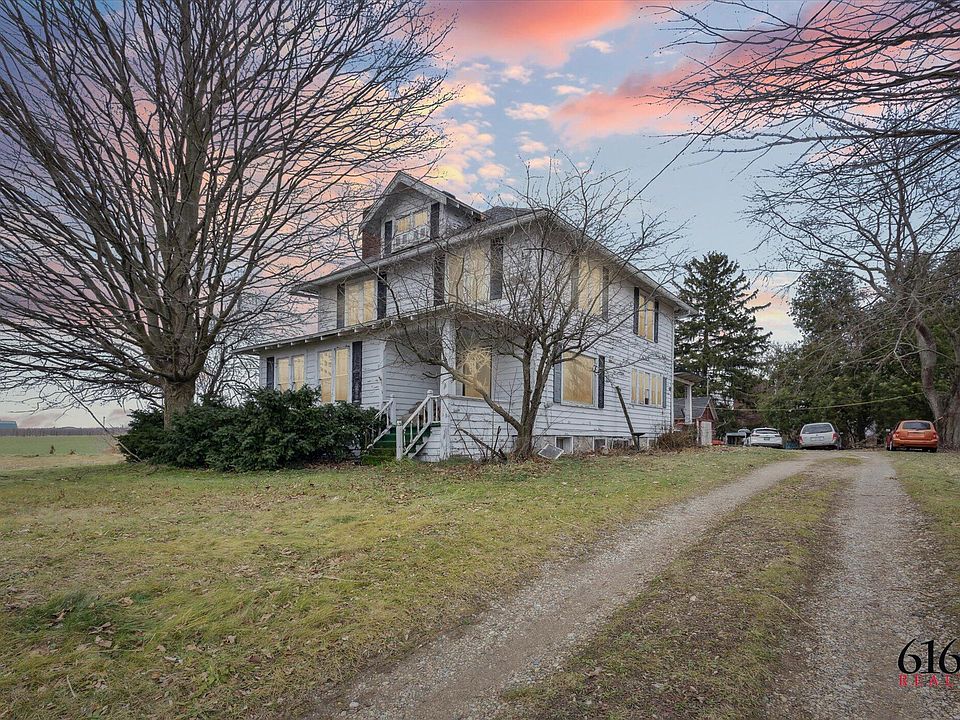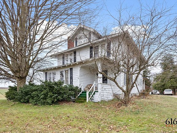 Beautiful 1910 Historic home on 2.9 acres just outside of the village limits of Kent City. This home has 4 Bedrooms, 1 full, 2 half baths, County Kitchen , Formal Dining Room with French Doors to the Living Room, and on a full basement. This home has original oak flooring, an elegant staircase, original solid wood doors and hardware, wood trim and crown moulding, and has several built ins. Outside there is a massive 36x54 barn with loft storage, a 12X12 Chicken Coop, a Bull pen and 2 ample sized storage sheds. There are raspberries, grapes, apples and cherries that grow on the property, and a tranquil walking trail that takes you to the back of the property. New updates in the last 3 years include: A high efficiency furnace, AC, well pump, and new blown insulation in the attic. There's also foam injected insulation in the exterior walls. New roof in 2019. The house currently uses propane, but natural gas is now available at the street. This property is in need of a few updates to bring it back to its full potential. Open House on Sat, Dec 28 from 11-2pm.