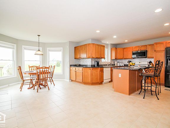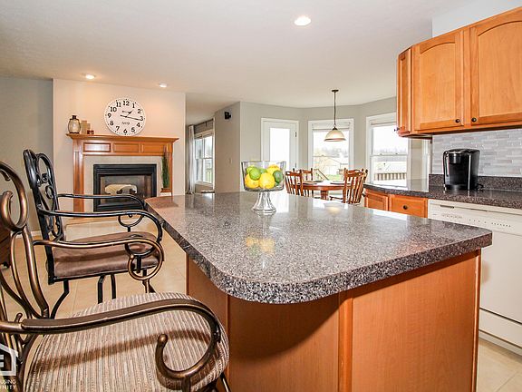 Sun filled rooms throughout! Open & airy country home offers plenty of room to roam! Freshly painted throughout! 2 story foyer flows into the spacious family room featuring a beautiful see thru fireplace that also highlights the giant country kitchen! Complete with brand new back splash, new black stainless steel fridge/microwave & tons of maple cabinetry offer plenty of storage & a great gathering place in your home! BEAUTIFUL Master! Professionally finished lower level, full poured-wall basement! Enjoy coffee on your back deck overlooking 3+ acres or lemonade on the 2-sided front porch! 5.1 surround sound in family room & master! High efficient furnace! Clean lines, well appointed finishes & a fantastic location: this property has been meticulously maintained & is ready for your touch!