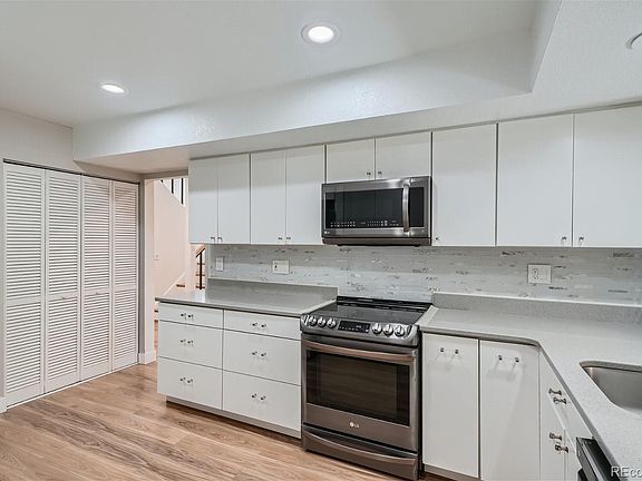 Light and bright, this meticulously maintained townhome offers the perfect blend of comfort and accessibility. Upon entering, you're welcomed by abundant natural light and modern finishes. This gem boasts 3 beds, 2.5 baths, wood burning fireplace, 1 car garage + 1 carport, and an easy-care front and back patio! Your new kitchen features sleek quartz countertops, new stainless steel appliances, and ample storage catering to the needs of any home chef. Upstairs, you'll find the serene primary suite complete with a luxurious ensuite bathroom and massive closets. Other upgrades include newer roof, new flooring, new plumbing, updated electrical, new windows and new light fixtures. Enjoy your morning coffee in your private patio surrounded by massive enchanting trees maintained by the HOA. With low-maintenance landscaping, you'll have more time to explore everything the vibrant community has to offer. Conveniently located near the RTD line, commuting to downtown Denver or exploring the surrounding area is a breeze. Just steps away from the best authentic restaurants, parks, shops, grocery stores, and I-225 this home has everything you're looking for! Remodeled and well maintained, this home feels like a single family with the price tag of a townhome.